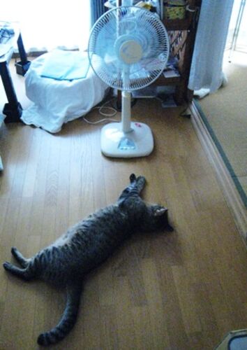 猛暑である。 長い猫はますます長くなり、一方では、 こんな現象が起こっている。 我が家は風通しが良いので、東京の猛暑と言えど、割合に過ごしやすい方だと思う。故に、私自身は、家ではほとんどクーラーをつけない生活をしているのだが。 「留守の間、猫…