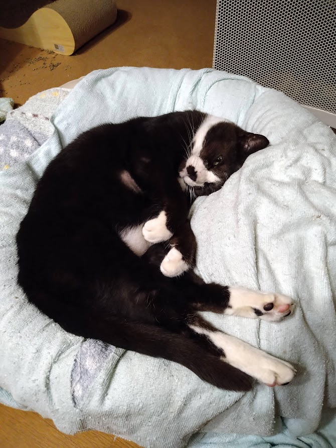 昼間は日向の猫ベッドの中。夜はヒーターの前で、幸せそうに寝ているアタゴロウを見ると、彼がやがて今の試練を乗り越えてくれるのではないかと、ついつい期待してしまうのである。